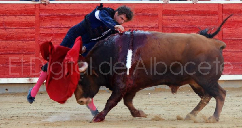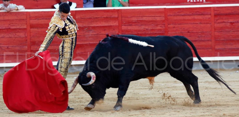 Brindó Cayetano al público el parsimonioso tercero de la tarde y comenzó la faena de muleta con las rodillas clavadas en la arena del coso albaceteño, pudiéndole de poder a poder al toro de Daniel Ruiz y levantando de sus asientos a sus acólitos entre el público.