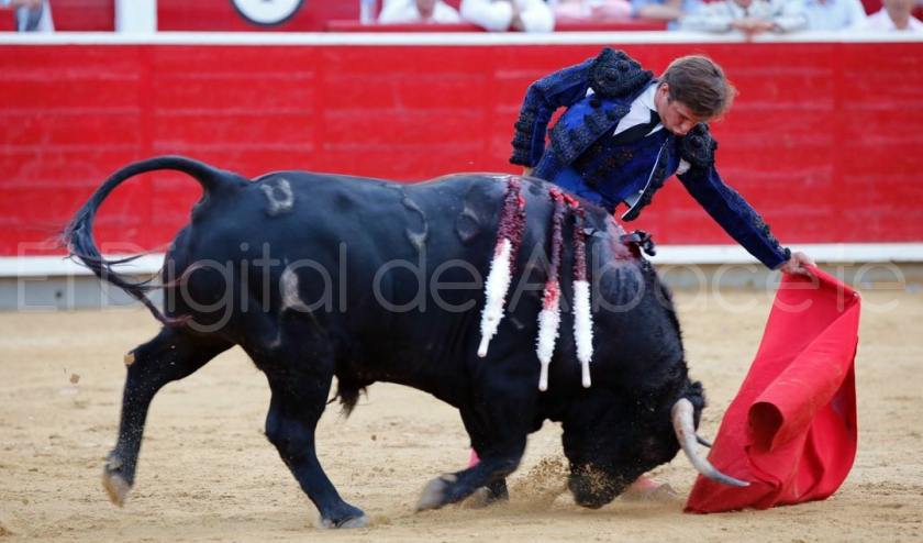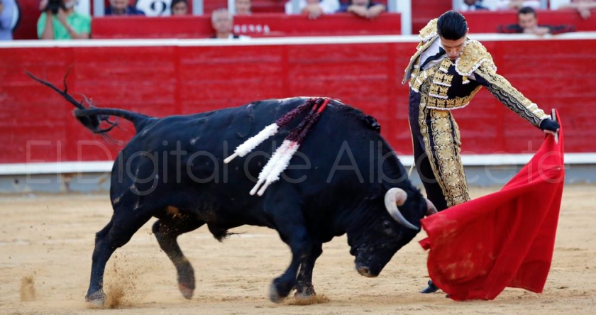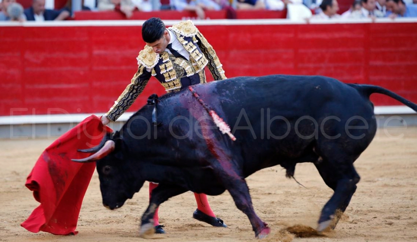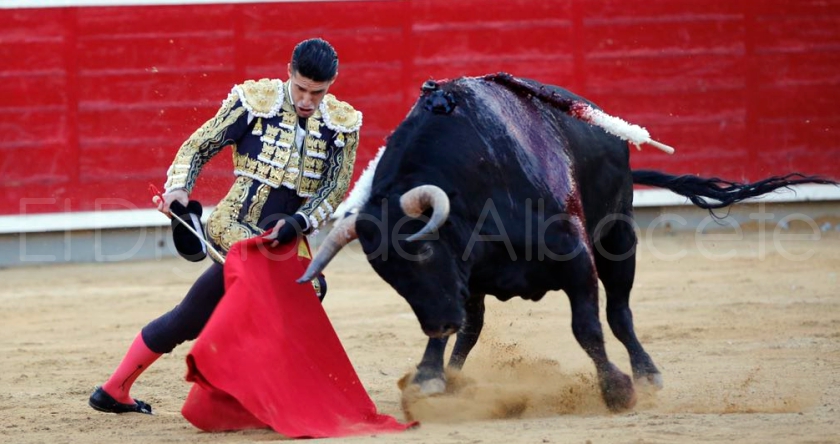 Brindó Cayetano al público el parsimonioso tercero de la tarde y comenzó la faena de muleta con las rodillas clavadas en la arena del coso albaceteño, pudiéndole de poder a poder al toro de Daniel Ruiz y levantando de sus asientos a sus acólitos entre el público.