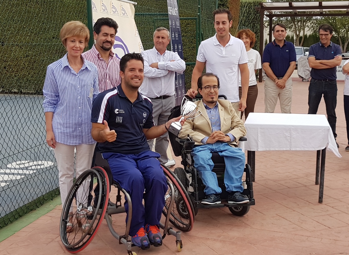 La entrega de premios ha contado con la presencia de la Diputada Maria Victoria Leal, los concejales Federico Pozuelo, Mari Angeles Martínez Paños, Francisco Javier Mármol, Catali y Arturo Gotor. También han estado presentes Encarna Rodríguez, presidenta de AMIAB, Marcelino Escobar, presidente de Cocemfe, Paco López, presidente del Club Tenis Albacete y el director del torneo, Julián García.