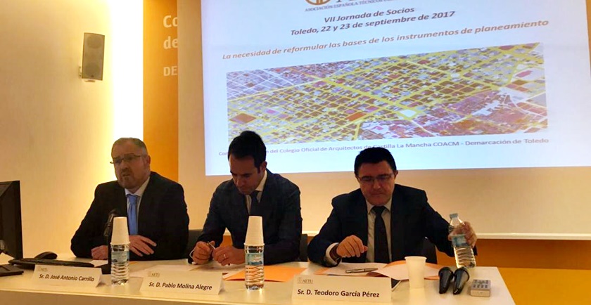 El director general de Vivienda y Urbanismo, José Antonio Carrillo, ha participado en el acto de apertura de la VII jornada anual de Socios de la Asociación Española de Técnicos Urbanistas (AETU) celebrada en el Salón de Actos del Colegio de Arquitectos de Toledo.