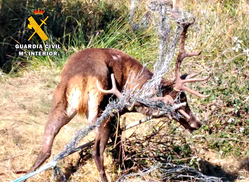 Los operadores de la Central Operativa de Servicios (COS) de la Guardia Civil de Albacete recibieron la llamada telefónica, en el teléfono de urgencias 062, de un ciudadano que manifestaba haber encontrado en un coto de caza del término municipal de Casas de Lázaro un ciervo atrapado por las astas, en un vallado metálico cinegético.
