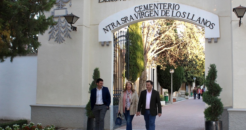 El alcalde de Albacete, Manuel Serrano, ha visitado el cementerio municipal para comprobar in situ el correcto funcionamiento del dispositivo especial puesto en marcha desde el Ayuntamiento con motivo de la festividad del Día de Todos los Santos.