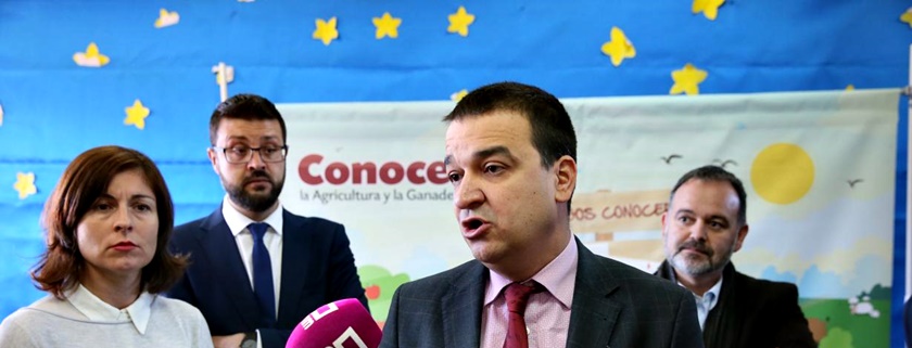 El consejero de Agricultura, Medio Ambiente y Desarrollo Rural, Francisco Martínez Arroyo, ha presentado el proyecto ‘Conocer la Agricultura y la Ganadería’ que muestra de forma lúdica y divulgativa a la comunidad educativa “cómo son y cómo funcionan realmente las distintas producciones agrícolas y ganaderas”, y acercan a los consumidores de hoy y del futuro la historia de los alimentos que consumen en su día a día.