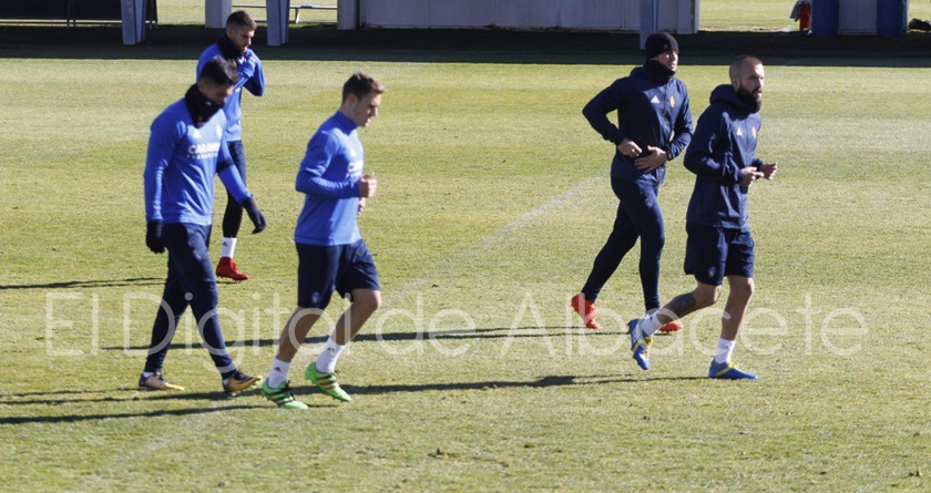Tras el entrenamiento del Albacete Balompié, el Real Zaragoza se ha ejercitado también en las instalaciones de la Ciudad Deportiva Andrés Iniesta antes de emprender viaje a Valladolid, donde este martes cierran el año 2017 enfrentándose al Real Valladolid en el José Zorrilla.