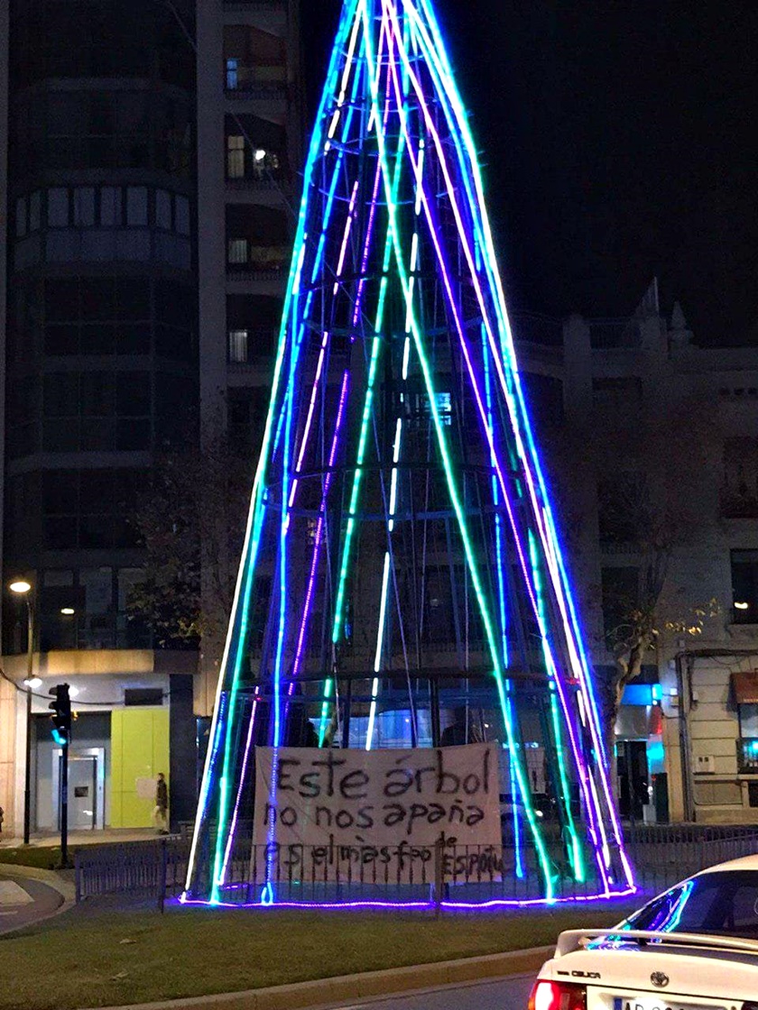 A través del grupo de Facebook ‘Denuncia en Albacete’ se ha publicado una fotografía en la cual se puede leer una pancarta que se ha puesto en dicho ‘árbol’ y que tirando de rima muestra su descontento con dicha ‘decoración’ navideña al manifestar, “este árbol no nos apaña, es el más feo de España’.