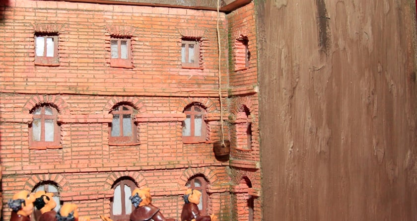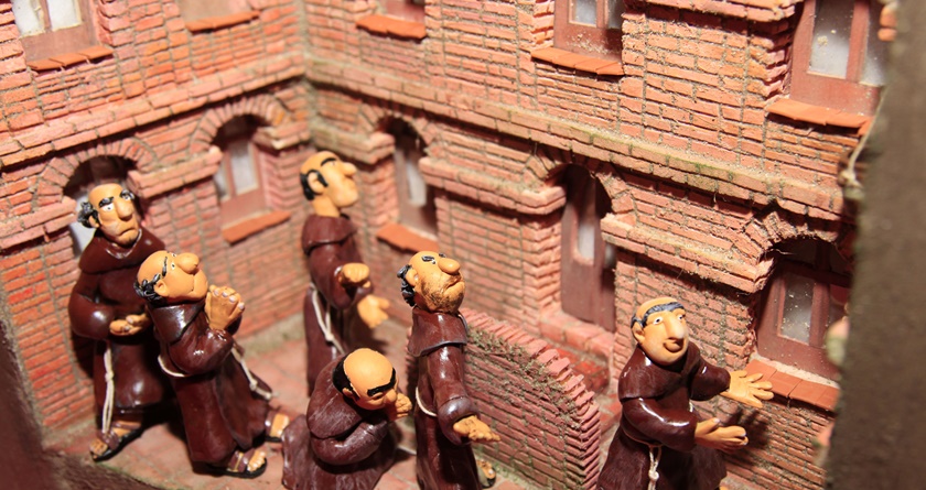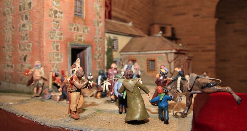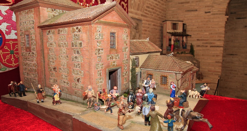 Elaborado por el Grupo Beleniza Amigos del Colegio Alfonso VI, el belén da protagonismo al Convento de los Franciscanos Descalzos de San José, también conocido como Gilitos, edificio construido entre los siglos XVI y XVII.
