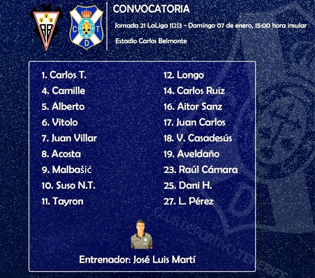 Componen la lista de convocados tinerfeñista los siguientes 18 jugadores: