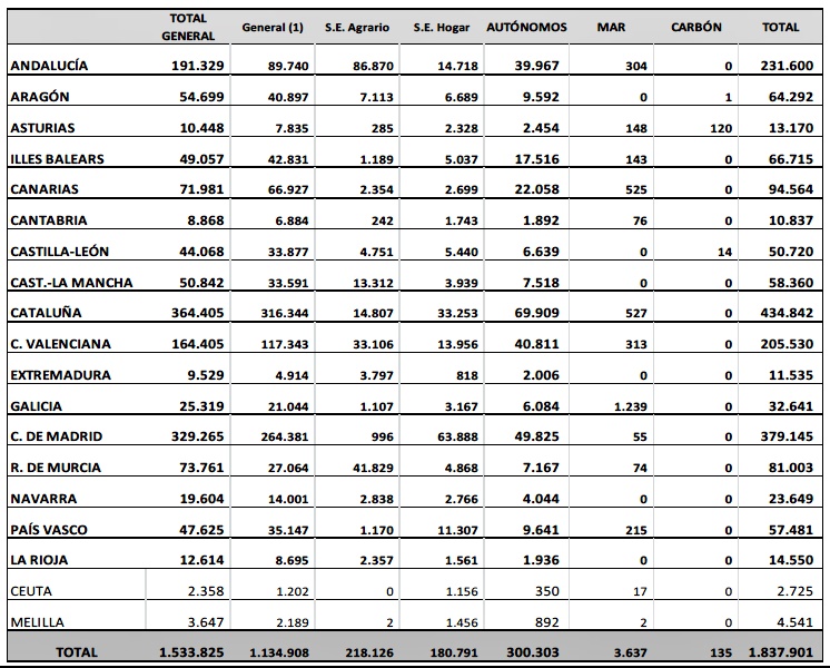 Los datos de afiliados por comunidades autónomas se distribuyen así: