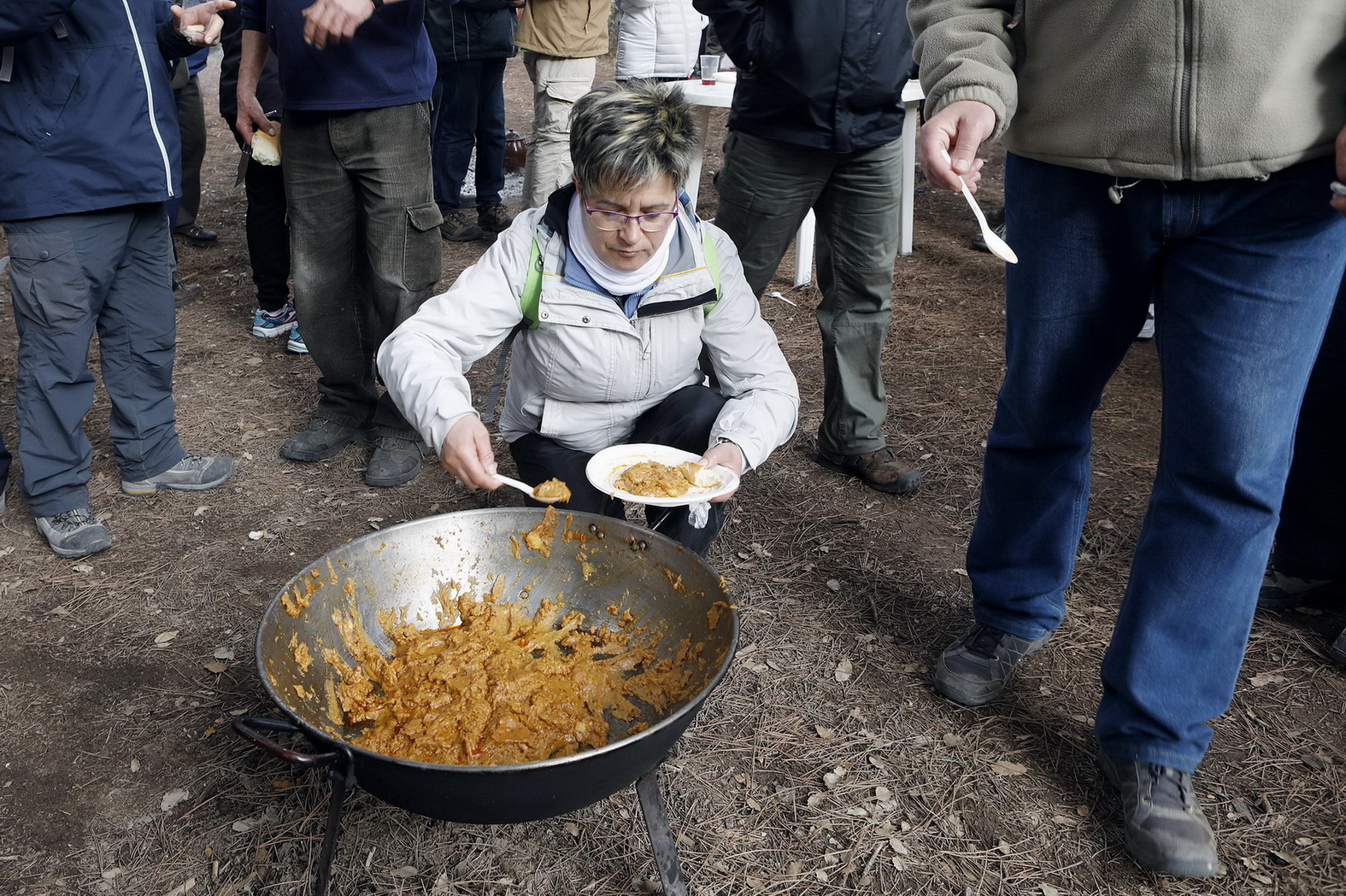 Continuaron el bello recorrido hasta llegar a Fuente Esteban, lugar donde el ayuntamiento del municipio nos deleitó con unas ricas gachas a la lumbre, salchicha y ‘tajás’, regado con el rico vino de la cooperativa local y como colofón un calentito café, más que suficiente para continuar la marcha primero entre Quejigos y luego pinos, atravesando cumbres con hermosas vistas al valle formado por el rio Júcar donde se encontrarían durante el recorrido y a través de estas vaguadas algunos manantiales que antiguamente eran aprovechados para practicar agricultura de subsistencia.