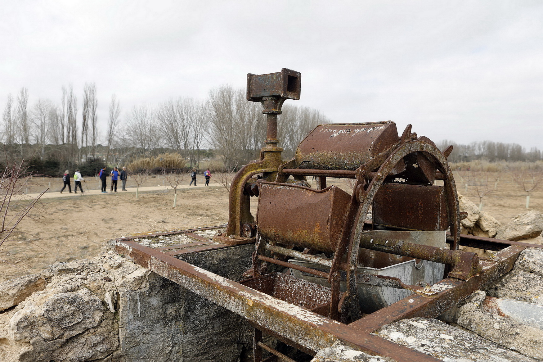 Todavía queda en pie la chimenea que se utilizaba en la antigua papelera y que es la imagen que mejor representa el lugar y la presa, que crea una bella cascada, en este caso con abundante agua.