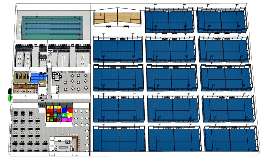 Además, Ciudad del Deporte tiene como objetivo que la gente pueda practicar deporte durante todo el año, independientemente de la climatología. De ahí la amplia oferta de instalaciones entre las que están más de 1.000 metros de gimnasio con actividades dirigidas, piscina cubierta, pistas de pádel indoor y outdoor, ludoteca y parque de bolas, pistas de tenis, pistas de vóley playa, campo de fútbol 5vs5, zona de Pilates Máquinas, piscina de verano, squash, restaurante…