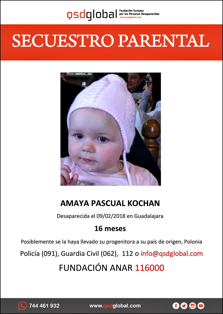 Este martes, la Guardia Civil pedía colaboración a través de su cuenta de Twiter (@guardiacivil) para localizar a una menor de 16 meses de edad que ha desparecido en Guadalajara.