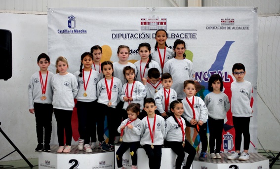 El pasado fin de semana el Pabellón Municipal de Aguas Nuevas acogió a un total de 130 gimnastas que participaron en el Campeonato provincial Copa Diputación escolar y Federados, asimismo se celebró Primera Fase de Liga Interclubes Escolar, base y elite pertenecientes a la provincia de Albacete ( Club Trampolín, C.P. Ana Soto) , Aguas Nuevas (Club Aerotramp) , Munera ( Club Poseidón) y Tarrazona de la Mancha ( Club Nova) .