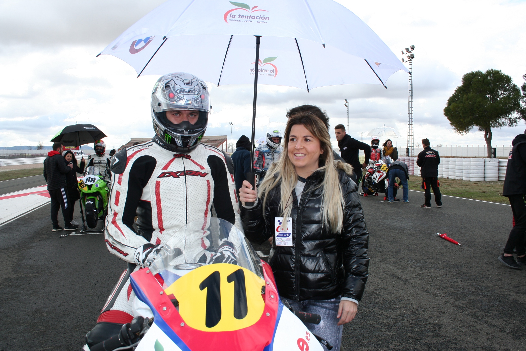 Dadas las condiciones de la pista, entre mojado y seco, la elección de los neumáticos resultó fundamental, especialmente en la primera, con la Copa 600 y la Copa Promoción de la misma cilindrada. El asfalto del Circuito aún estaba húmedo y la mayoría optaron por neumático rayado, aunque conforme fue secándose la trazada, el ‘titubeo’ de las motos en cada frenada se hacía más patente.
