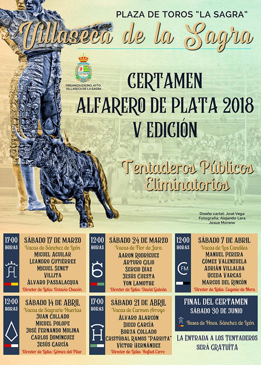 El V Alfarero de Plata continuará el próximo 7 de Abril a las 12:00 horas en un tentadero con vacas de “Francisco Camino. Los Candiles”, en el que actuarán los novilleros:
