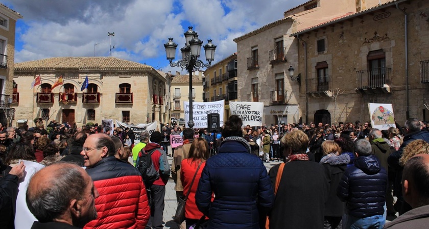 Cerca de 500 personas, según los organizadores, se han concentrado este sábado ante el Consistorio de la localidad conquense de Priego para mostrar su rechazo a la instalación de macrogranjas de cerdos en esta zona de la provincia, convocados por Pueblos Vicos Cuenca.