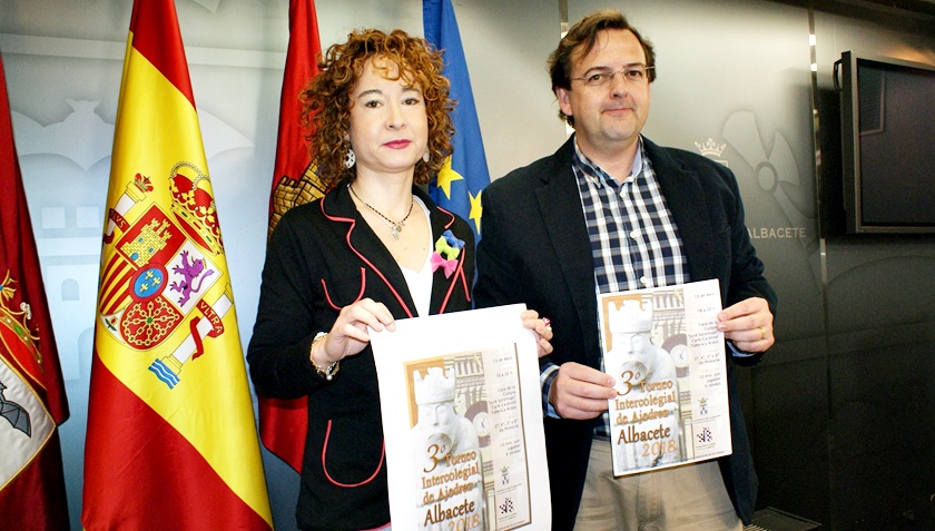 La concejal de Educación del Ayuntamiento de Albacete, Mª Ángeles Martínez, ha presentado junto al presidente de la Federación de Ajedrez de Albacete, Justino López, el Tercer Torneo Intercolegial de Ajedrez de Albacete que se celebrara el próximo 13 de abril, a partir de las 16:00 horas, en la Casa de la Cultura José Saramago.