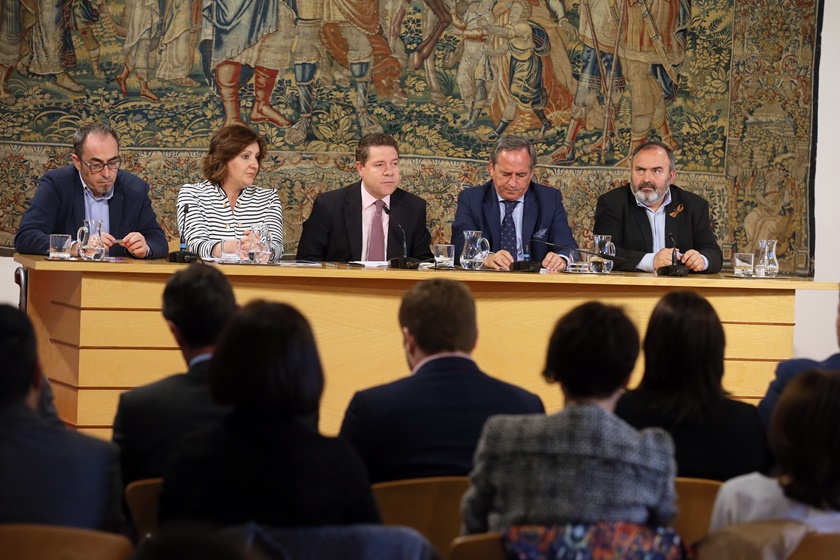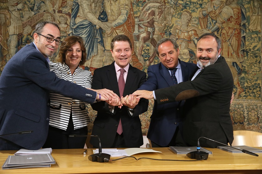 Así lo ha dado a conocer el presidente del Ejecutivo autonómico, Emiliano García-Page, tras la firma del acuerdo de aplicación de este plan que se ha celebrado este martes en el Palacio de Fuensalida, sede de la Presidencia del Gobierno regional; un acto en el que, entre otros, también han participado, la consejera de Economía, Empresas y Empleo, Patricia Franco; el presidente de la Confederación de Empresarios de Castilla-La Mancha (CECAM), Ángel Nicolás; y los secretarios generales de UGT y CCOO en la región, Carlos Pedrosa y Paco de la Rosa.