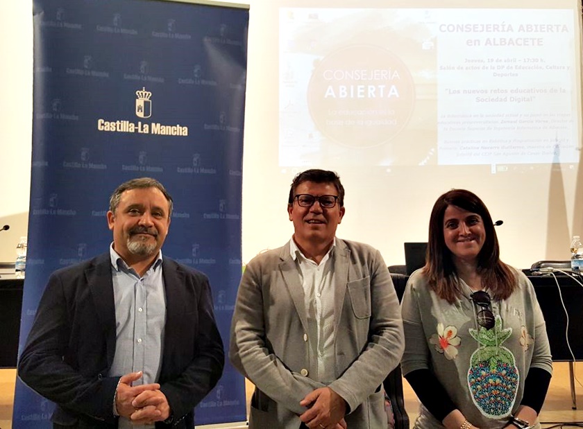 “Los nuevos retos educativos de la Sociedad Digital” ha sido la temática elegida hoy en la III edición de la “Consejería Abierta”, celebrada en Albacete, en la que se ha expuesto la ponencia, “la Informática en la sociedad actual y su papel en las etapas educativas preuniversitarias”, impartida por el director de la Escuela Superior de Ingeniería Informática de Albacete, Ismael García Varea, y la conferencia “Buenas prácticas en Robótica y Programación en Infantil y Primaria” a cargo la maestra de Educación Infantil del CEIP San Agustín de Casas-Ibáñez, Catalina Navarro Guillermo, ganadora además del premio a la mejora de la calidad educativa en la pasada convocatoria Giner de los Ríos, del Ministerio de Educación, Cultura y Deporte.