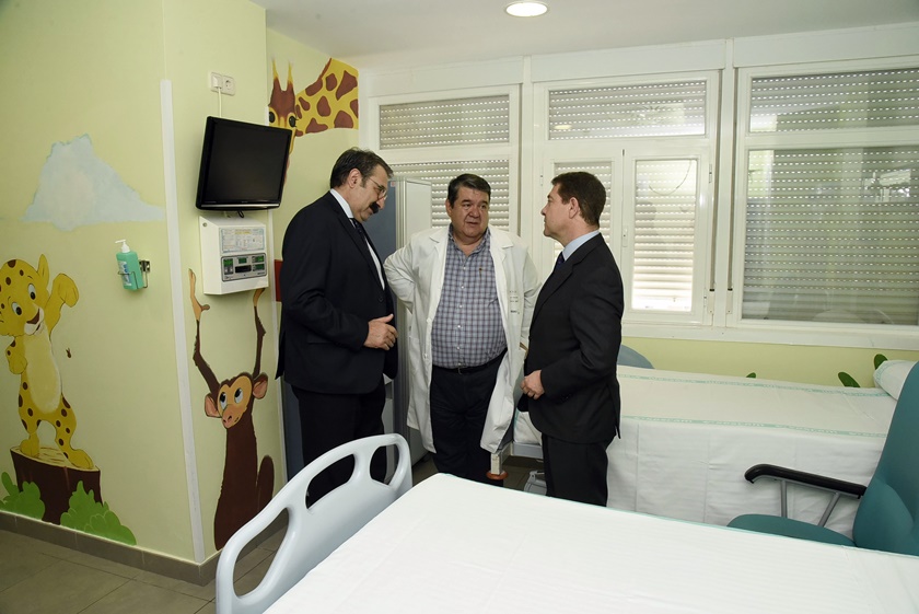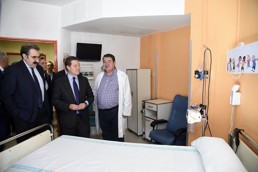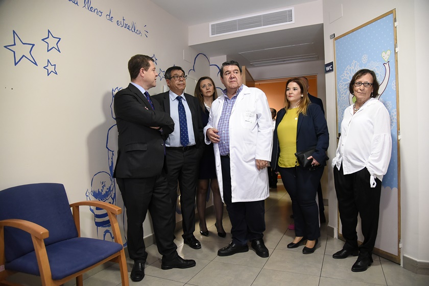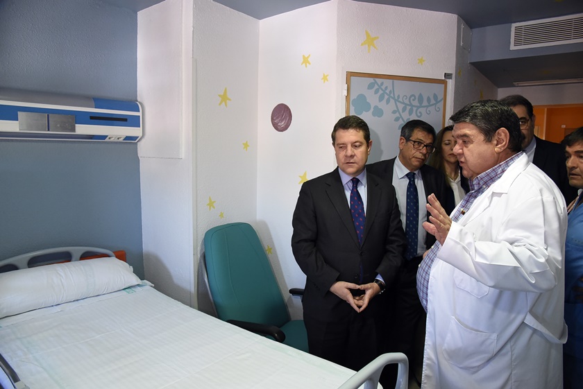 El presidente de Castilla-La Mancha ha visitado también la nueva unidad de hospitalización pediátrica para procesos quirúrgicos, habilitada en la cuarta planta del edificio Materno-Infantil, dotada con seis camas de hospitalización, distribuidas en cuatro habitaciones –dos individuales y otras tantas dobles–.
