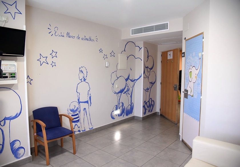 Para habilitar la Unidad Oncohematológica se han acometido diferentes obras en la planta de Pediatría, con el fin de diferenciar esta área de hospitalización del resto de las habitaciones infantiles, dando respuesta de esta manera a las necesidades asistenciales de los pacientes oncológicos pediátricos.
