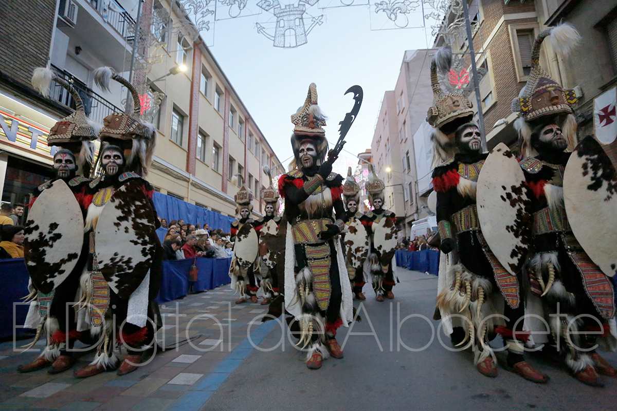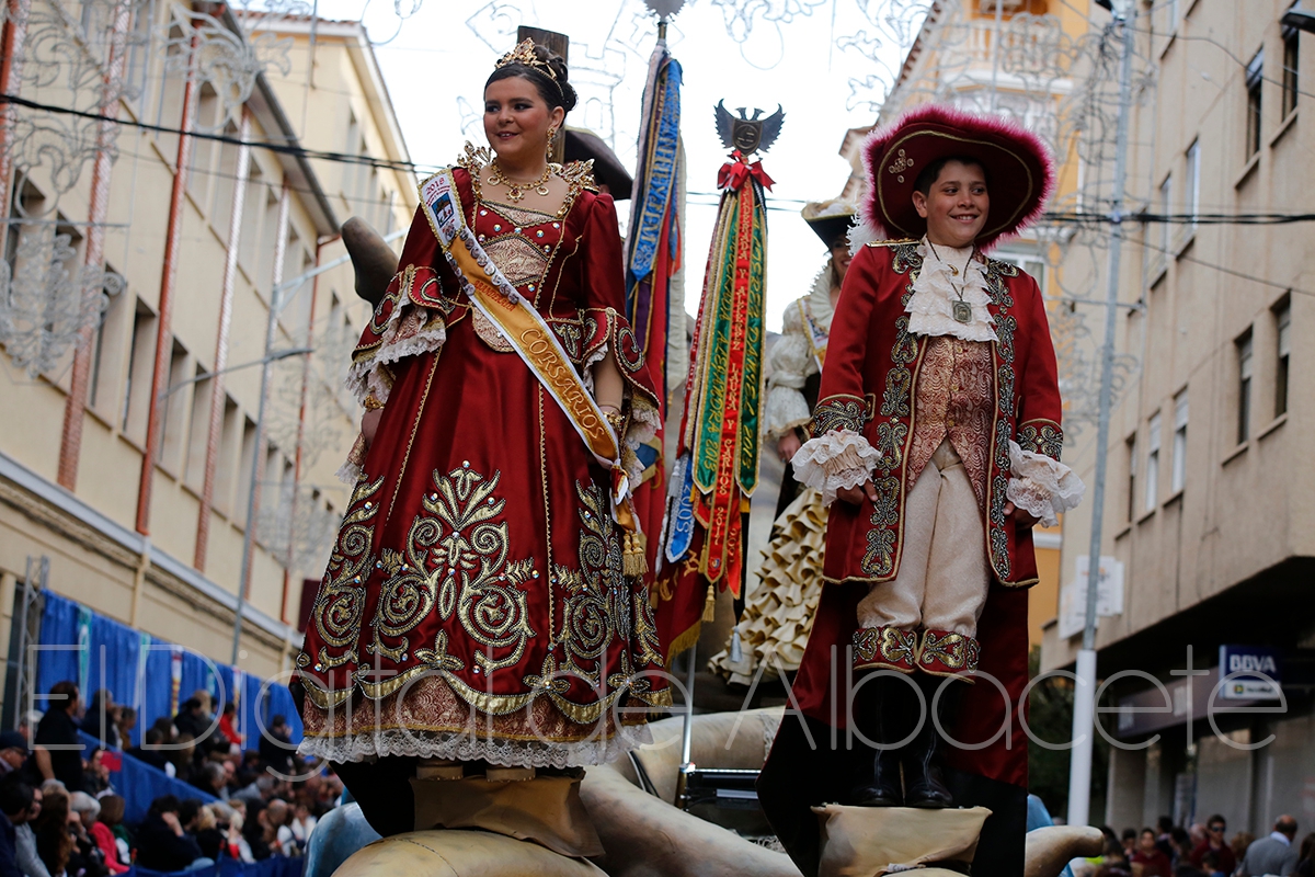 Tras el protocolo formado por la Reina de Fiestas mayores, Reina infantil, Reinas de distrito y acompañantes, así como concejal de Fiestas, Israel Rico, fueron desfilando una a una las diez comparsas por el orden habitual: primero las cinco cristianas y a continuación las cinco moras.