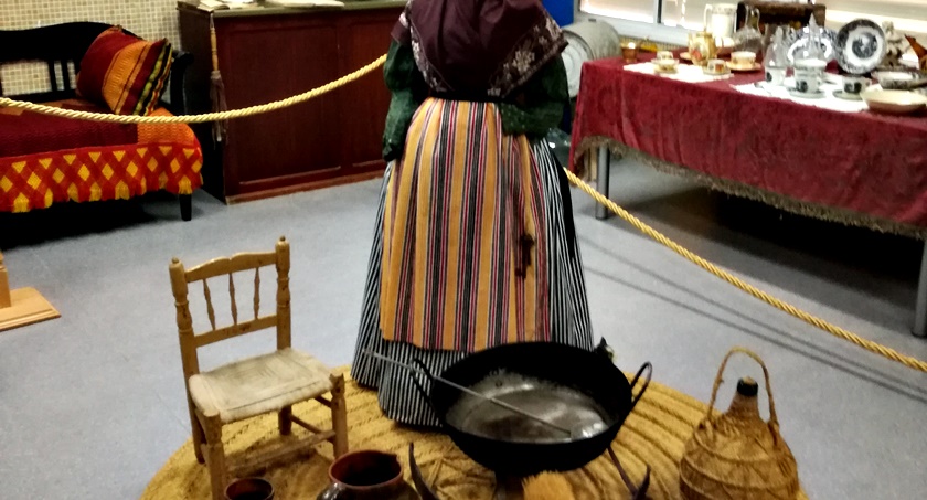 Los vecinos han ido aportando enseres de su antepasado que van desde arcas, vajillas, muebles, cuadros, aperos de labranza…. ‘Lo que el tiempo nos dejó’ revive estancias como una alcoba, la tienda del pueblo, la capilla o la típica cocina, sin olvidar los aperos que se usaban en el campo o las artes típicas de la matanza.