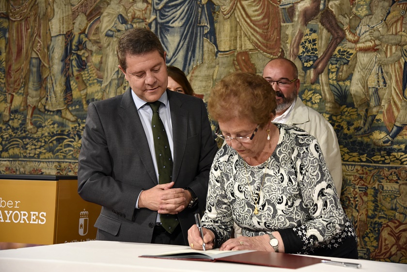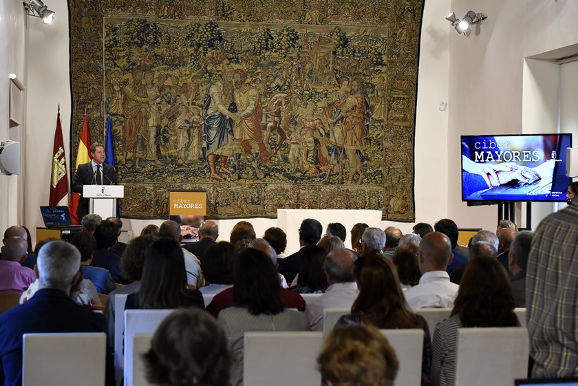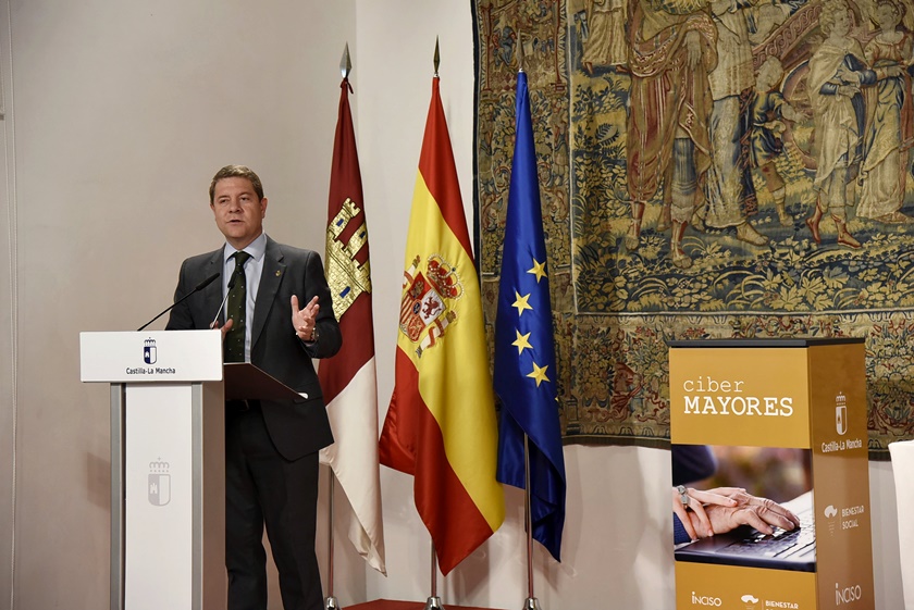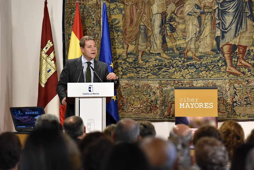 El presidente de Castilla-La Mancha, Emiliano García-Page, ha presidido hoy, en el Palacio de Fuensalida de Toledo, el acto de entrega de nueve aulas de informática a centros de mayores de la región, una acción encaminada a acabar con la brecha digital que se engloba en el Marco de Envejecimiento Activo impulsado por el Gobierno regional.