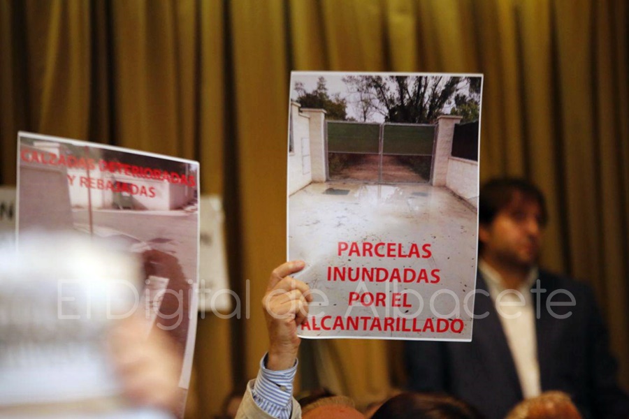 En la mañana de este miércoles, los afectados llenaban las butacas del público, de la mano de carteles en los que continuaban denunciando que lo que se les “proyectó” como un proceso de urbanización de “lujo” para sus terrenos ha terminado siendo un foco de problemas constantes que dificultan el día a día de las familias que tienen la propiedad de estas parcelas como su residencia habitual. Y es que, a pesar de que dichas obras, que han tenido un coste de 8 millones de euros, finalizaron hace algo más de dos años, en los viales de ‘Los Prados’ todavía se pueden ver los cuadros de luces sin encajar dejando cables y demás componentes de la instalación eléctrica al alcance de cualquiera, siendo un “peligro para todos y especialmente para los más pequeños, lo que puede ocasionar una desgracia”, remarcaba González.