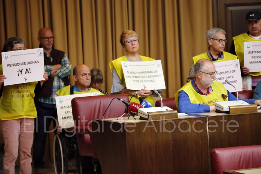 La plataforma ‘Albacete en Defensa de las Pensiones Públicas’ alzaba la voz en el Pleno del Ayuntamiento este miércoles, pidiendo la unión de la Corporación Municipal y su colaboración para trasladar las demandas de los afectados a sus respectivos partidos políticos en todos los ámbitos de representación. Demandas entre las que se encuentran la pensión mínima de 1.084 euros o la reducción de la edad de la jubilación, fijada en los 67 años, a los 65 años.