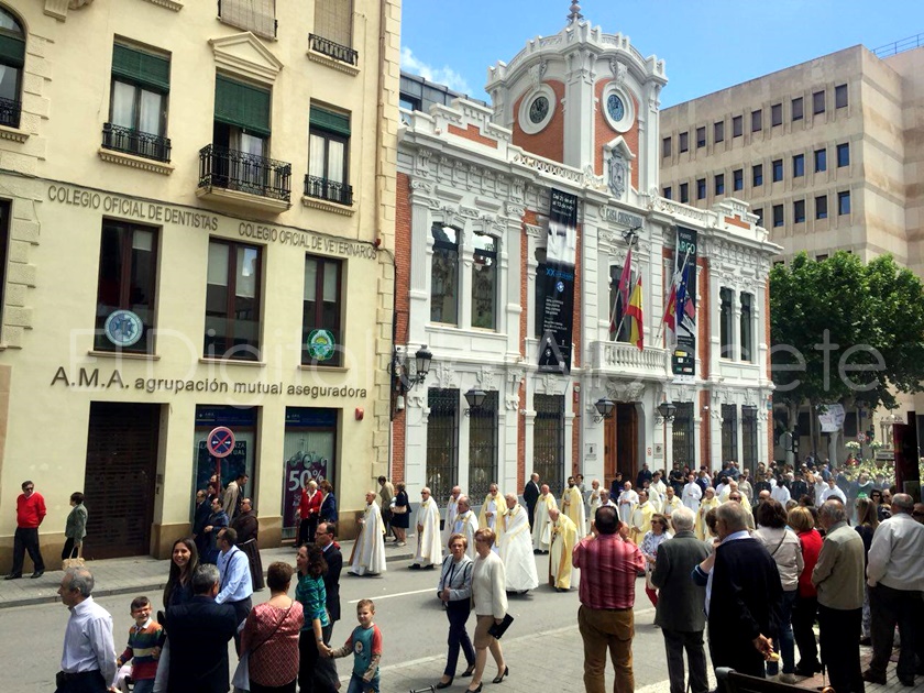 En la mañana del domingo Albacete celebró distintos actos con motivo de la celebración del Corpus Christi. En la Catedral comenzaron los mismos con una eucaristía a cargo del Obispo de la Diocesis D. Ciriaco Benavente.