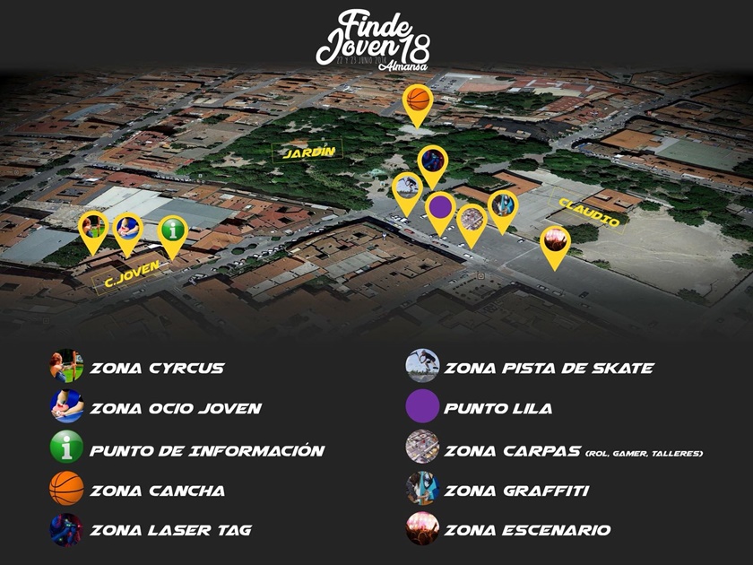 Durante los días 22 y 23 de junio se desarrollará en Almansa el denominado “Finde Joven” consistente en una gran cantidad de actividades pensadas por y para todos los jóvenes de Almansa que pondrán la guinda al curso 2017/2018 en el que el Centro Joven ha tenido una de las programaciones más amplias y ambiciosas que se recuerdan. Para ese fin de semana se arrancará el 22 en el Centro Joven con una actuación en directo del monologuista Juanjo Albiñana, seguido de un concierto del grupo local Red Light ambientando la “fiesta PROM”. El plato fuerte llegará el sábado 23 cuando la programación arranque a las 10h. de la mañana simultaneando actividades en el Centro Joven, parking del Claudio y jardín de los Reyes Católicos con actividades como exhibición de graffitis, pista de skate y miniscooter, laser tag, torneos deportivos, batallas de gallos, música en directo, concurso de bandas de música, etc.