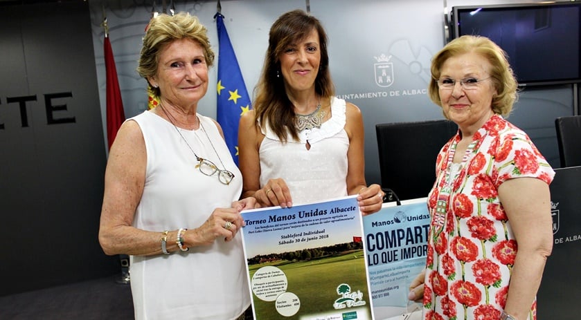 La concejal responsable del área de Acción Social en el Ayuntamiento de Albacete, María Gil junto a la presidenta de Manos Unidas en Albacete, Pilar Martínez han presentado en la mañana de hoy un “Torneo Benéfico de Golf” que tendrá lugar el sábado día 30 de junio, en el Club de Golf Las Pinaillas en Albacete, con un precio de participación de 20 euros socios y 40 euros no socios, y cuya recaudación será destinada a financiar un proyecto en África.