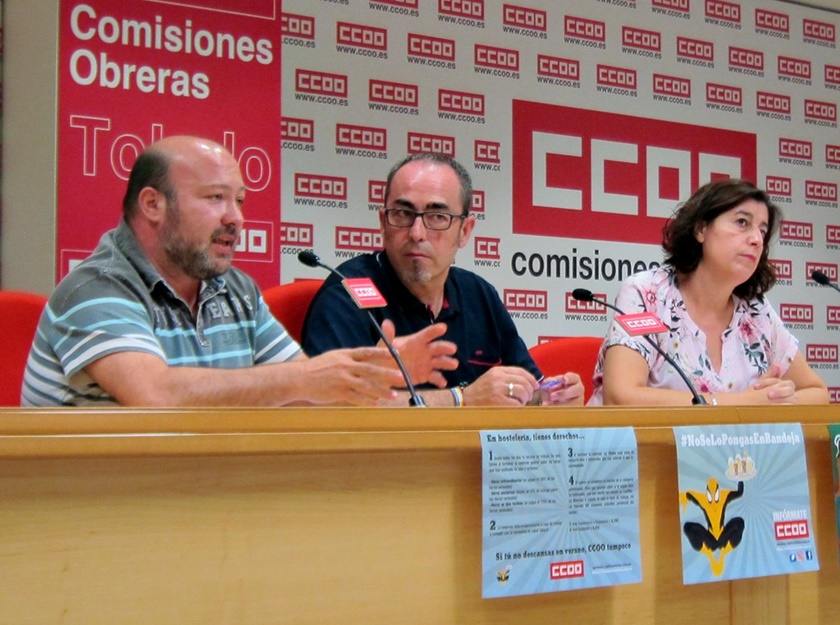 El responsable de Negociación Colectiva de CCOO-Servicios ha realizado estas manifestaciones en rueda de prensa en Toledo, donde este martes, acompañado del secretario regional, Paco de la Rosa, y de la secretaria regional de CCOO-Servicios, Brigi Soánez, ha presentado las campañas ‘No se lo pongas en bandeja’, dirigida al sector de la Hostelería, y ‘No rebajes tus condiciones laborales’, al del Comercio. Con ellas, el sindicato pretenden informar a los trabajadores y trabajadores de ambos sectores, que en la región aglutinan a más de 100.000 empleados, de las condiciones laborales y salariales mínimas que deben exigir.