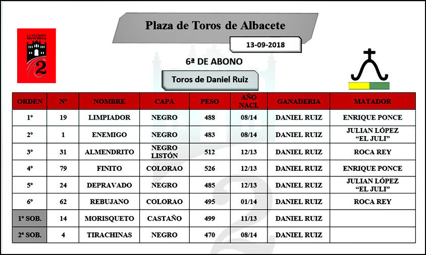 En lo que al orden de lidia se refiere, es el siguiente: