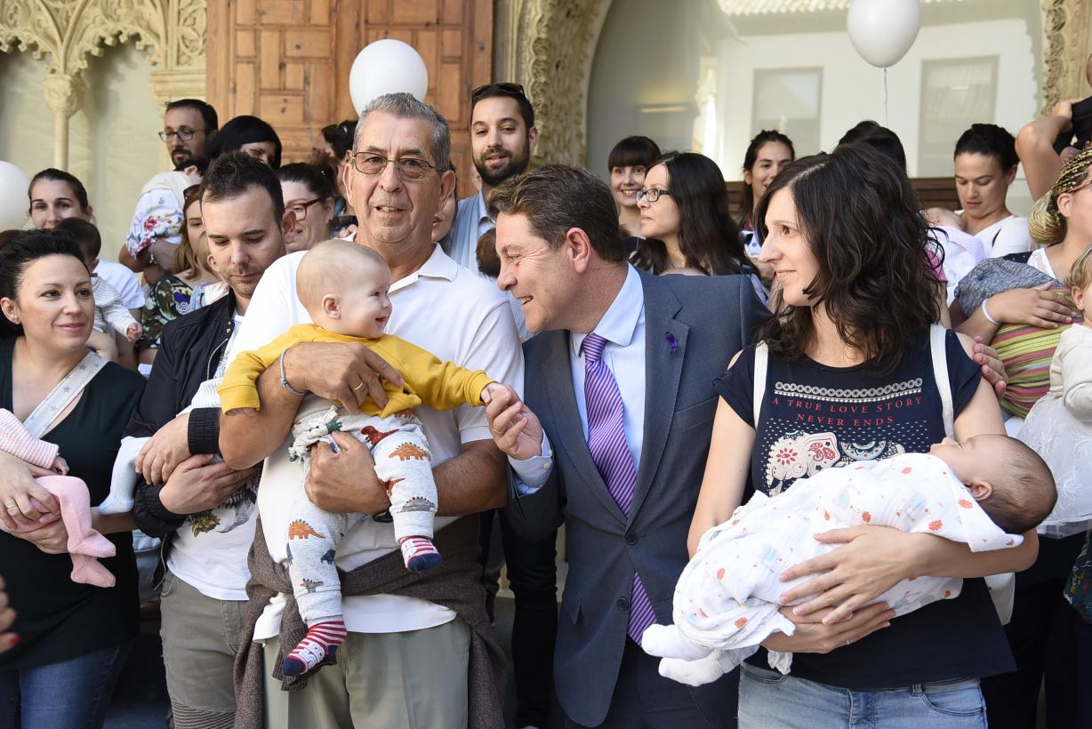 Coincidiendo con la celebración de la 13ª Semana de la Lactancia Materna en Toledo, cerca de un centenar de madres con sus bebés y profesionales sanitarios procedentes de distintas localidades del Área de Salud de Atención Primaria de Toledo se han congregado en el Palacio de Fuensalida, donde el presidente Emiliano García-Page, acompañado por la directora general de Calidad y Humanización de la Asistencia Sanitaria, Blanca Parra, les han recibido y mostrado su apoyo al amamantamiento.