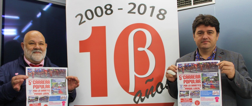 El concejal de Deportes del Ayuntamiento de Albacete, Francisco Navarro, junto al presidente de la Asociación de Familias Diabéticas de Albacete (ASFADI), Deogracias Martínez ha presentado la V Carrera Popular por la Diabetes ‘Parque Lineal’.