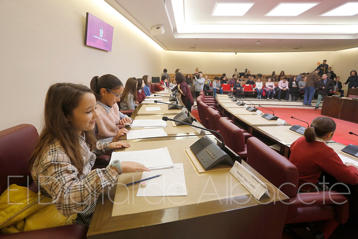 Propuestas en un día muy especial, en el que no ha faltado la petición de que “se construya un parque de atracciones en Albacete” y que “se manden menos deberes”, decía Paco Pérez, uno de los 21 alumnos de los colegios y pedanías albaceteñas que daban voz en el Pleno a los más pequeños, que no solo pedían por las personas de su edad, sino que reclamaban “más albergues donde la gente pueda quedarse” o una “sociedad igualitaria en la que las mujeres tengan las mismas oportunidades que los hombres, eliminando la diferencia de género”, reivindicaban Natalia López y Aitana Guerra.