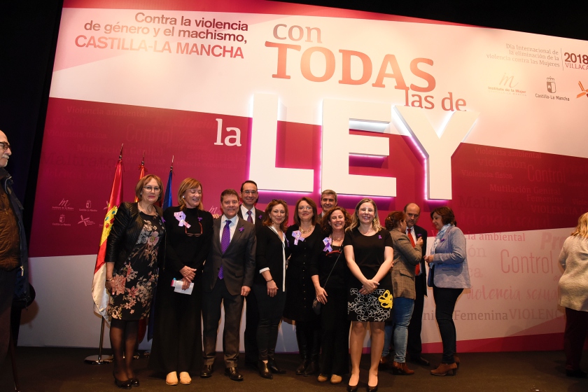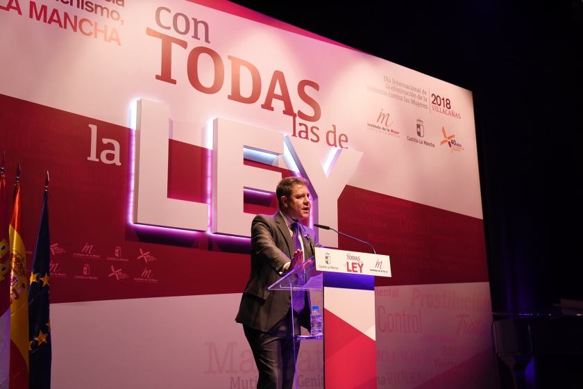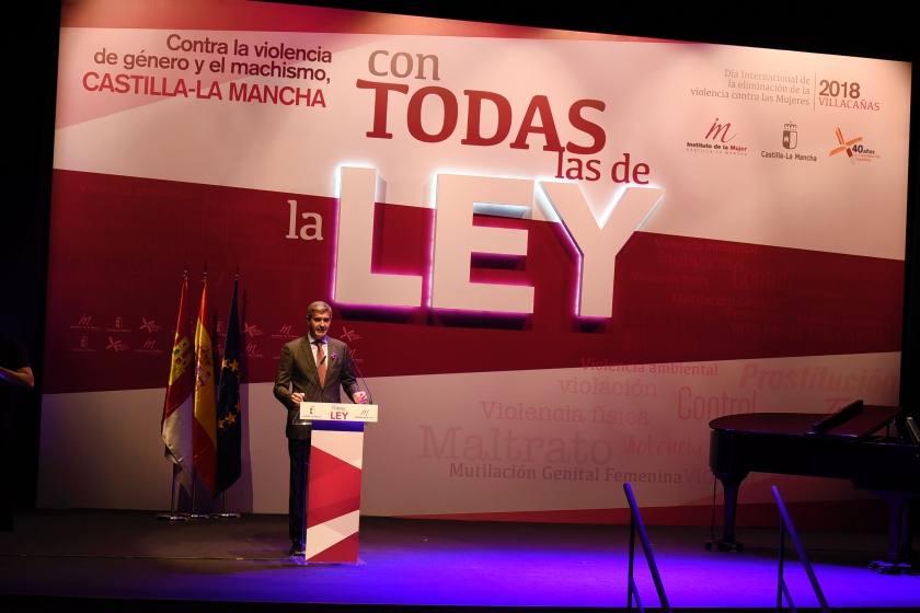 Durante este acto, que se ha celebrado bajo el lema ‘Con todas las de la Ley’ y al que han asistido más de 400 personas, el presidente regional ha estado acompañado por el presidente de las Cortes de Castilla La Mancha, Jesús Fernández Vaquero; el alcalde de Villacañas, Santiago García; la directora del Instituto de la Mujer, Araceli Martínez; y el presidente de la Diputación provincial de Toledo, Álvaro Gutiérrez, entre otras autoridades.