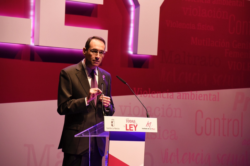 El jefe del Ejecutivo autonómico se ha felicitado de que, en Castilla-La Mancha, “no estamos de brazos cruzados y nos estamos tomando en serio” la lucha contra la violencia hacia las mujeres.
