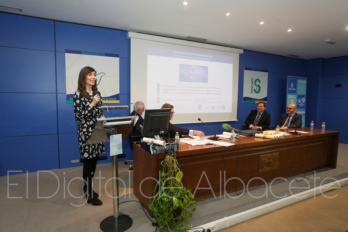 El premio de 1.000 euros al mejor trabajo de investigación, publicado en revistas científicas, y desarrollado en centros de la provincia de Albacete ha sido para el artículo ‘Pilot study of a preventive multicomponent nurse intervention to reduce the incidence and severity of delirium in hospitalized older adults: MID-Nurse-P’, de Almudena Avendaño Céspedes y los co-autores Nuria García Cantos, María del Mar González Teruel, Mónica Martínez García, Elena Villarreal Bocanegra, José Luis Oliver Carbonell y Pedro Abizanda Soler.