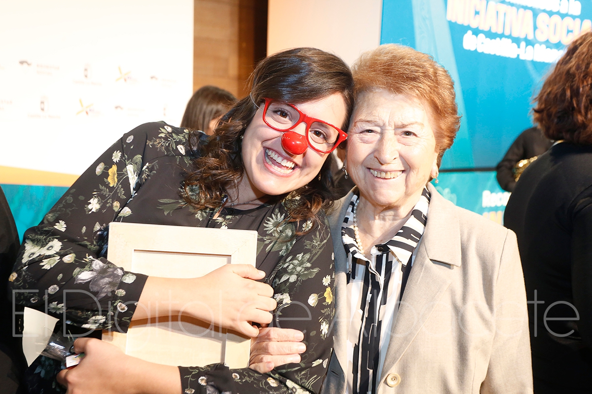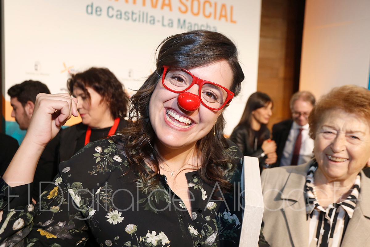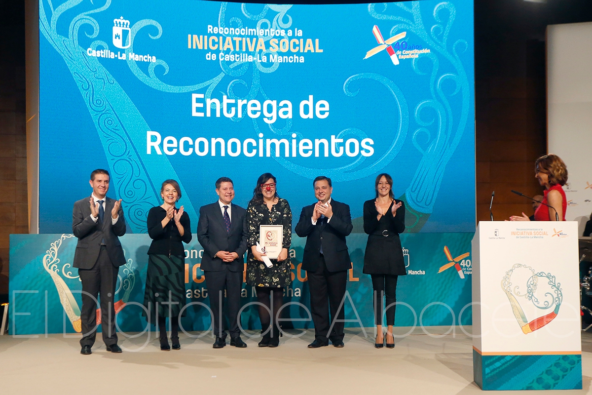 En el área del Voluntariado, han recibido el Reconocimiento a la Iniciativa Social, AVICEMCAM, que “son los mayores que están enganchados a la red” a los que la consejera de Bienestar Social ha dado la enhorabuena por la labor que realizan acerando a otros mayores las nuevas tecnologías a través de la Red de Centros de Mayores de Castilla-La Mancha; María José Blanco, autora de la obra ‘Mi vida en la maleta’, que acerca al público la enfermedad de Alzheimer representada por 200 voluntarios vecinos y vecinas de Tarazona de la Mancha; y también la Asociación Payapeutas del Hospital Universitario de Guadalajara, por “sacar siempre una sonrisa” en la recuperación de las personas en el Hospital con su ‘Payaso de Hospital’.