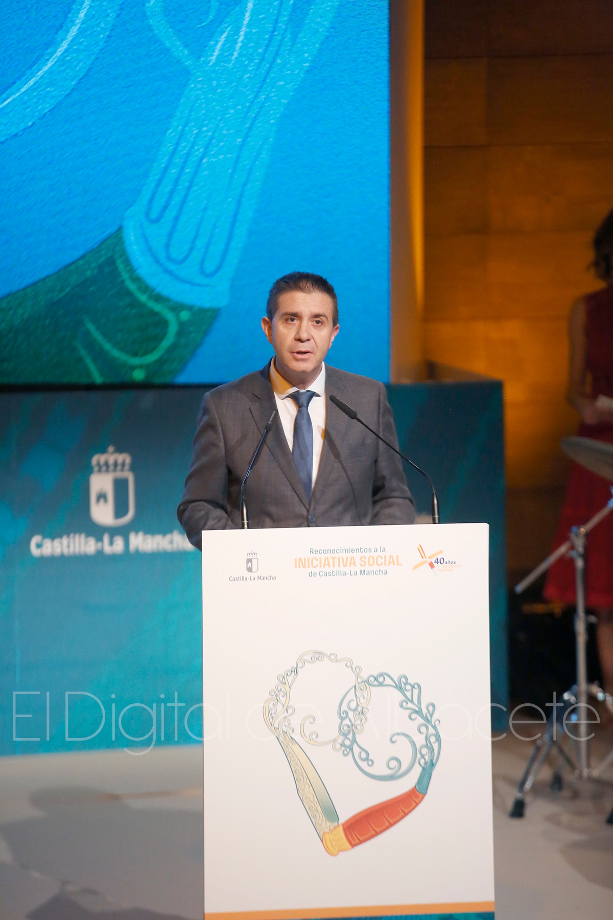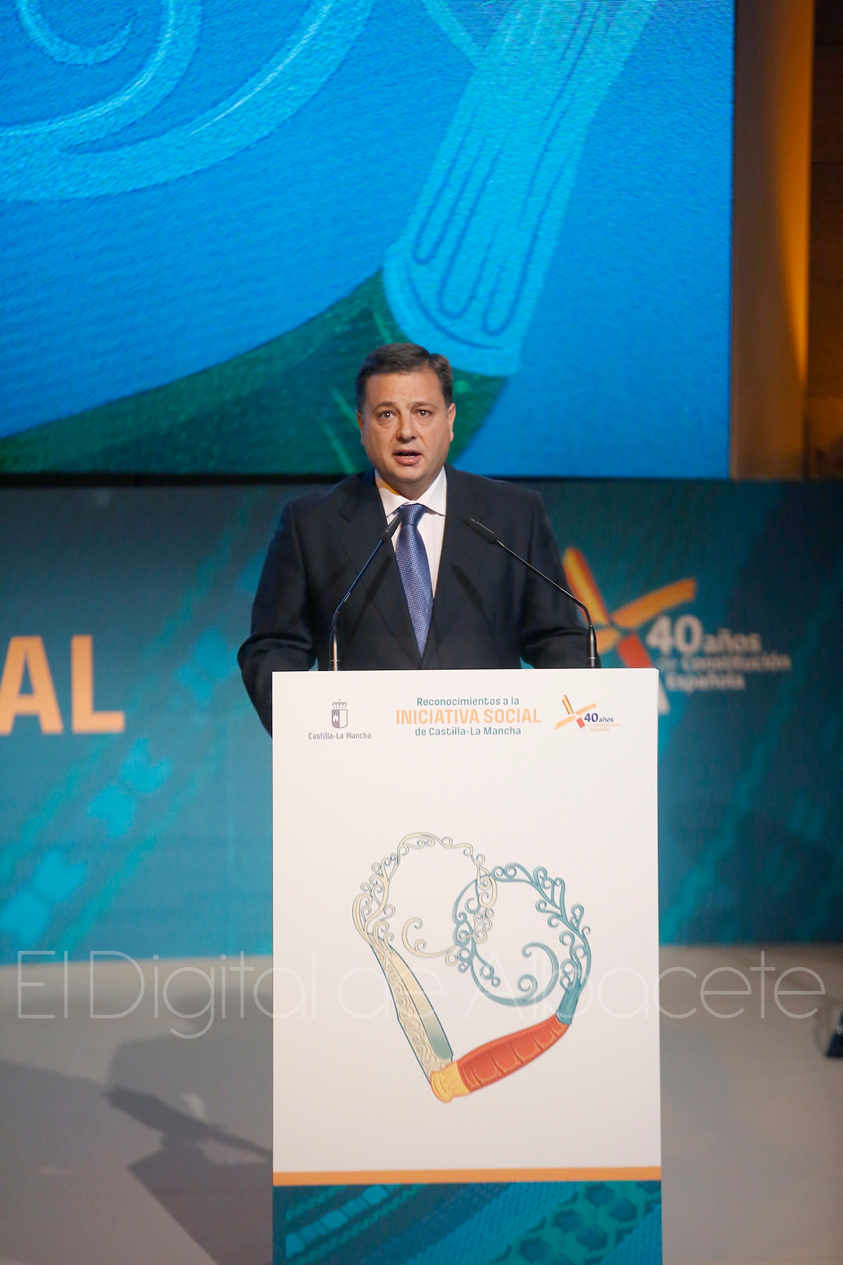 Sánchez ha destacado que el símbolo de estos premios es “un corazón entrelazado que se funde con el sentir de la tierra”, un símbolo que el año pasado año “se tiñó de los azules, y amarillos de la cerámica de Talavera de la Reina” y este año, “simula y entrelaza el movimiento de la navaja de Albacete, símbolo de su artesanía más arraigada”.