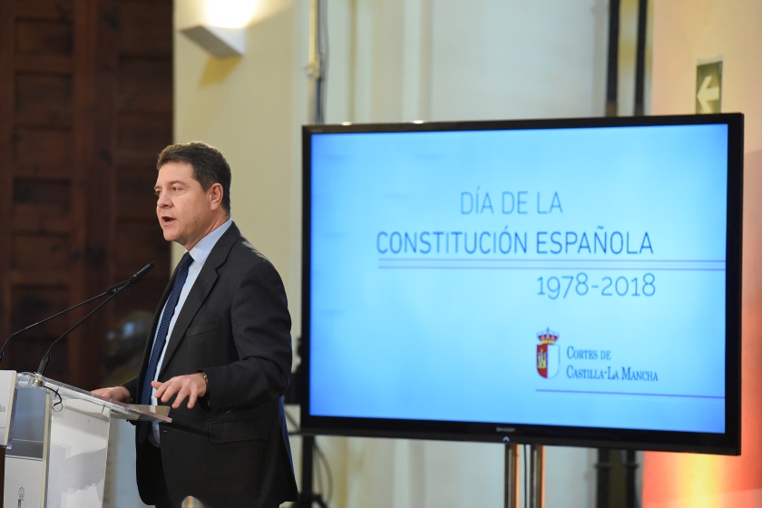 García-Page ha asegurado que la Constitución Española de 1978 “está hecha de un material” que incluso da cobijo “a quienes la atacan”, al mismo tiempo que ha alertado sobre una situación de “disenso institucional” que “se traduciría en miseria económica, social y más desigualdad”.