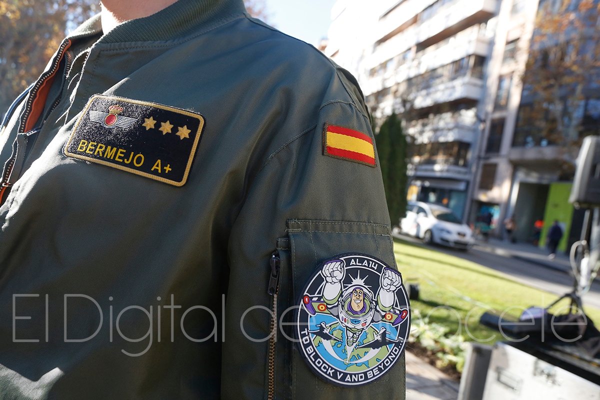 Un acto que ha finalizado con tres aviones Eurofighter, cedidos por la Base Aérea de Los Llanos, sobrevolando el cielo de Albacete, y que ha contado con la presencia de representantes de los siguientes ámbitos, que han participado en el traslado y entrega de la bandera para su izado, perteneciendo éstos a la Base Aérea, Subdelegación de Defensa, Maestranza Aérea, TLP, CENAD, Guardia Civil, Policía Nacional, Policía Local, Bomberos, Protección Civil, Universidad de Castilla-La Mancha, Confederación de Empresarios de Albacete, Albacete Balompié, Federación de Asociaciones de Vecinos de Albacete, APRECU, Asprona, Cocemfe y APACCU Los Llanos, así como del mundo taurino, de la justicia, la cultura o el periodismo.