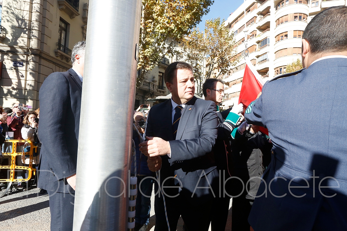 Evento organizado por el Ayuntamiento de Albacete, en el que ha sido el alcalde de la ciudad, Manuel Serrano, el encargado de izar la enseña acompañado por diversas autoridades civiles y militares del tejido albaceteño.