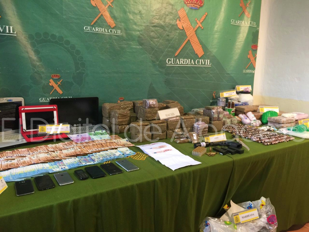 Con estos registros se ha conseguido desmantelar 32 puntos de venta de drogas, 3 laboratorios de procesado de estupefacientes y un taller clandestino.Se han incautado así, 5,4 kg de cocaína, 5 kg de metanfetamina, 91 kg de hachís y 16 kg de cogollos de marihuana, 4 kilogramos de sustancia de corte y 5 gramos de heroína. Además de una pistola con el número de serie troquelado marca Star 9mm parabellum alimentada y con un silenciador, 100 cartuchos 9mm parabellum, un carnet de identidad extranjero con datos de afiliación falsos, 6 billetes de 50€ falsos así como diversos recortes de billetes de 50 € falsos y 1 impresora, 12 vehículos de alta gama, numerosas básculas de precisión, varias máquinas empaquetadoras al vacío, diversas armas blancas algunas de ellas machetes de grandes dimensiones, varias máquinas de contar el dinero, 33.500 euros en efectivo, joyas, teléfonos móviles y equipos informáticos.