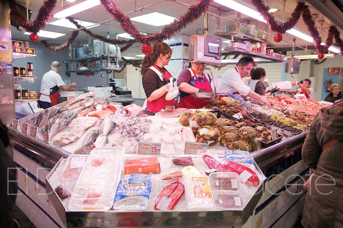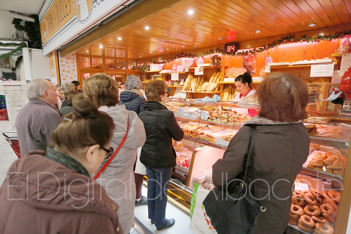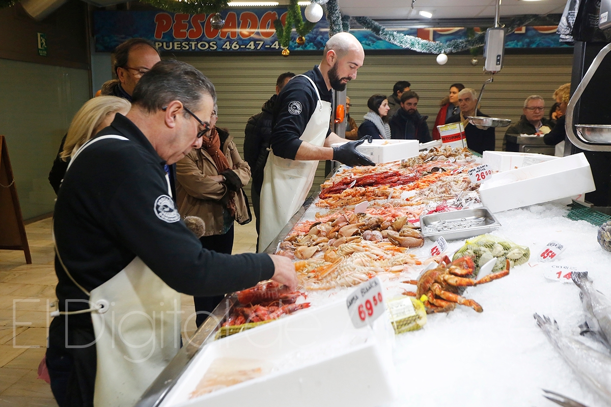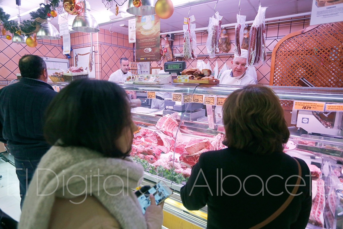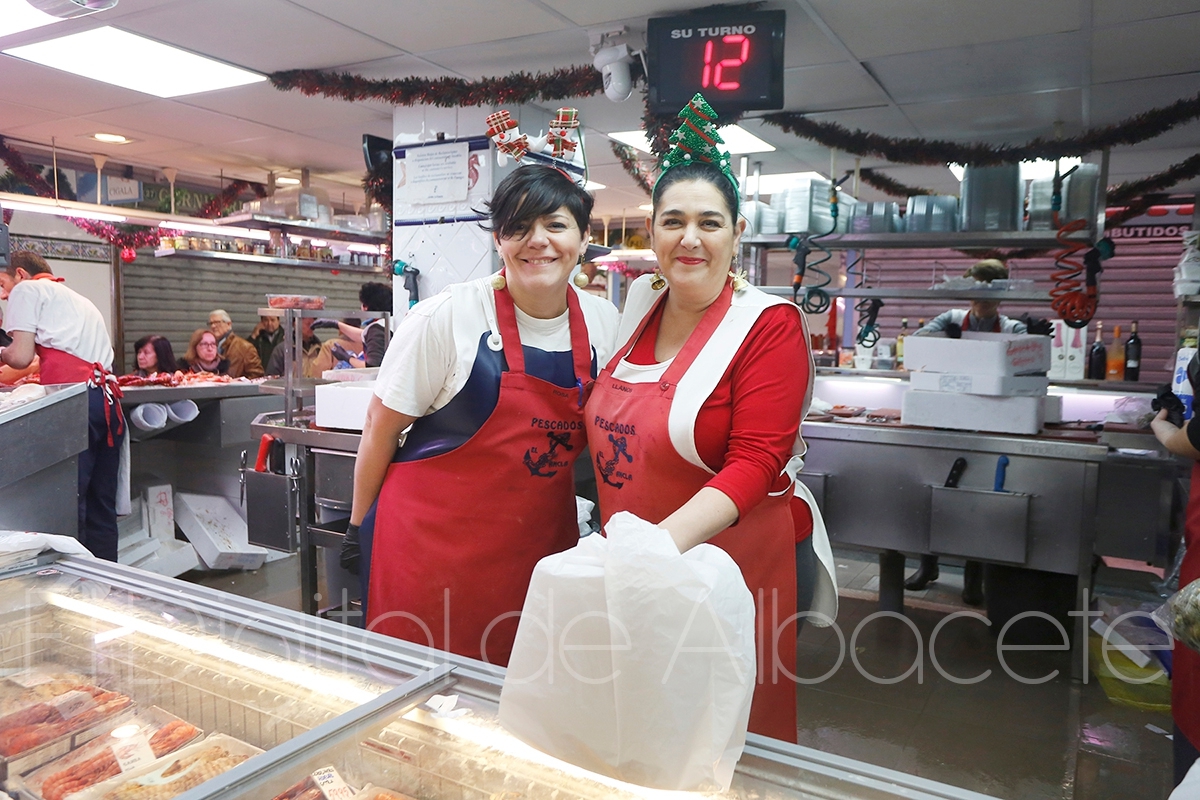 El Mercado de Villacerrada es un hervidero de gente este 24 de diciembre, y es que, hasta última hora los albaceteños aprovechan para comprar los productos que compondrán las mesas de esta noche, la más familiar del año. Cordero, cigalas, ibéricos, tablas de paté, queso, y de postre, melón, turrones y mantecados manchegos son los preferidos para la Nochebuena.
