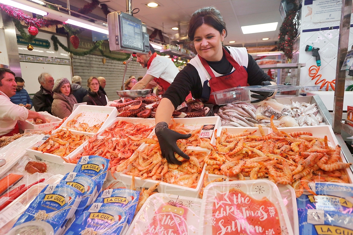 Algo que corrobora Genoveva, a quien nos encontramos comprando en un puesto de panadería, y que nos cuenta que su elección para esta noche será la paletilla de cordero. Otra de nuestras vecinas, María José, también puesta por el cordero y un “buen aperitivo”, a los que acompañará “un poco de marisco, porque está muy caro”. Tampoco faltarán los turrones esta Navidad, productos que ya tiene en casa, ya que ha sido previsora y en este día únicamente acudía al Mercado a por fruta.