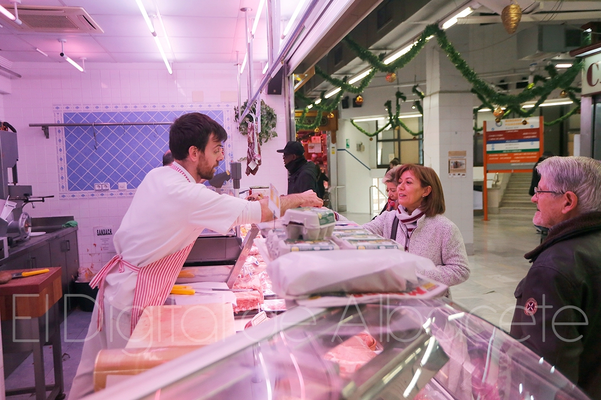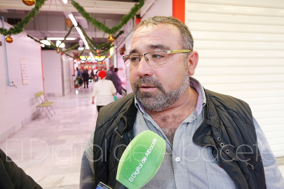 Actividad frenética desde primera hora de la mañana para los trabajadores del Mercado de Villacerrada, que recorren de punta a punta sus puestos para atender a clientes como Pepe, que explica a El Digital de Albacete que la cena que habrá en su casa será “variada”, y tendrá “un poco de marisco y un poco de carne”. Sin duda, la carne sigue siendo la elección estrella de los albaceteños, que continúan decantándose por el cordero, indica José Luis García, del establecimiento ‘Hijos de Jose García Cano’.